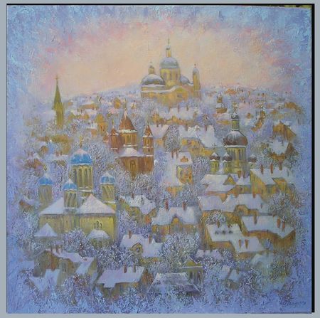 І жодної удаваної величі. От як вийшло в Олександра Гармидера в серпанку зимового дня побачити в одній картині (навіть із деяким порушенням топографії – утім, це не дратує, а навпаки, гармонізує) силуети усіх чернівецьких храмів? Символ величезної любові до Чернівців – і символ єдності світу Божого: Господь же один!