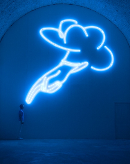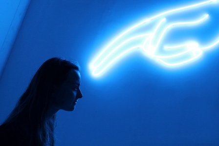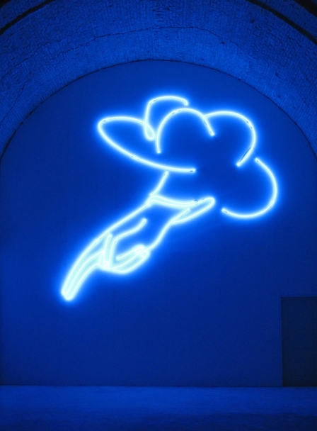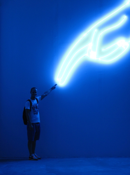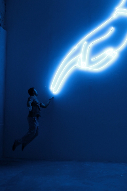 Степан Рябченко, «Рука, що благословляє», інсталяція, неон, 2012-2013. Мистецький Арсенал