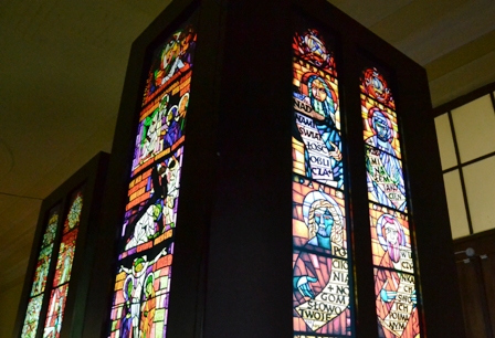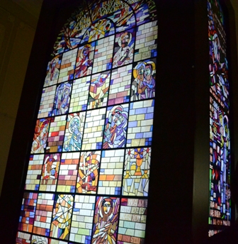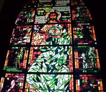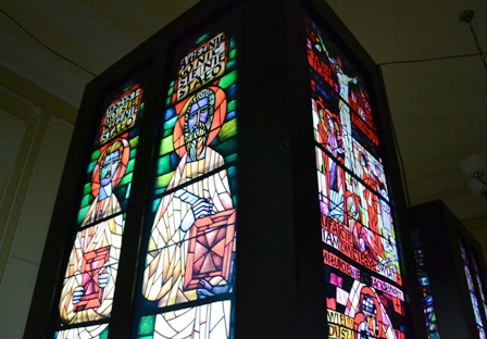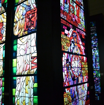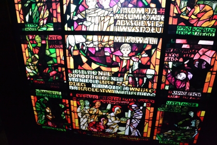 “Вітраж – це картина створена свинцем, мальована суцільним світлом забарвленого скла, замурована у кам’яних рамах архітектури. Мур, метал, скло і… світло. Ці різні матеріали вимагають окремої, властивої тільки вітражу, пластичної форми. Кожен день і година, а навіть мить безперервно змінює картини зі світла у склі й металі – невловимо їх освітлює, запалює і такі розпалені… перелітна хмара беззвучним віддихом гасить, насичує зовсім іншою глибиною… по-іншому – на світанку, по-іншому − ввечері. Вітражі змінюються самі, змінюють настрій оточення, є вихідною точкою інтер’єру. Їх вставляють не лише з метою освітлення інтер’єру, але й для того, щоб закрити вікна, а людині, яка входить до храму – допомогти зосередитися, дати їй можливість заново подивитися на світ і на саму себе”. Адам Сталони-Добжанський