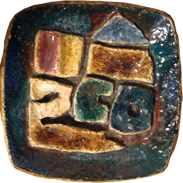 Петро Грицик. Блюдо декоративне. 1970 р.. Шамот, солі, полива. Чернівецький художній музей.