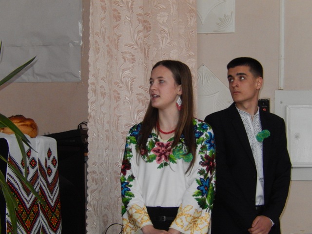 А на порозі школи учасників конференції гостинно зустрічали учні наукового товариства “Талант” Вашківецької ЗОШ разом із директром Надією Костянтинівною Бучацькою.