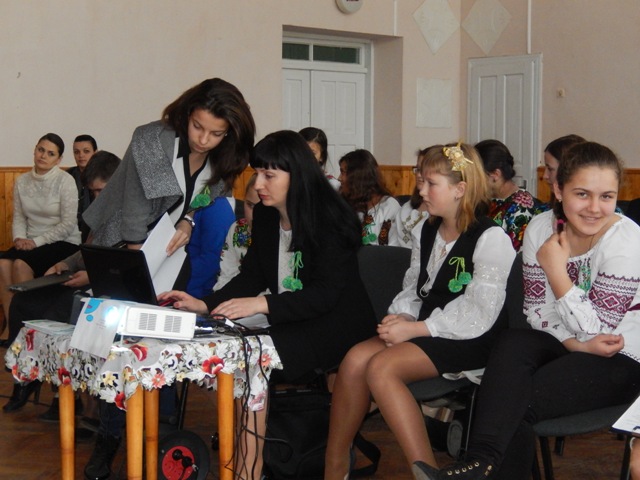 Гуменюк Марина Володимирівна, вчитель інформатики Вашківецької гімназії, учні-учасники конференції та Наталія Іванівна Гиршвельд, голова оргкомітету конференції, вчитель інформатики Вашківецької ЗОШ.