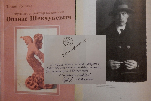 А вдома в мене теж є і власна реліквія: подарунок від родини Шевчукевичів: книга Тетяни Дугаєвої “Скульптор, доктор медицини Опанас Шевчукевич”: