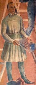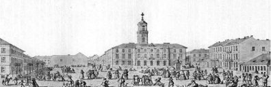Ймовірно, це автопортрет художника, картографа й музиканта Антона Ріттера фон Борковського серед велелюддя на головній чернівецькій площі.