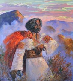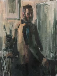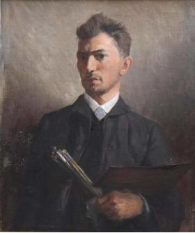 Гідність, стримане відчуття власного високого покликання і занурення у творчий процес прочитуються в автопортретній постаті маляра непересічного таланту.