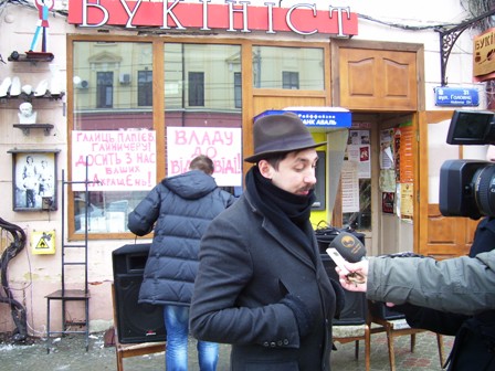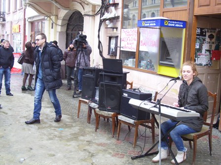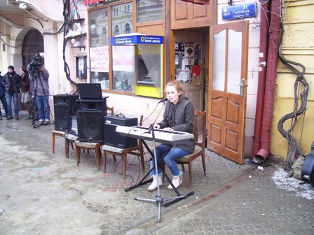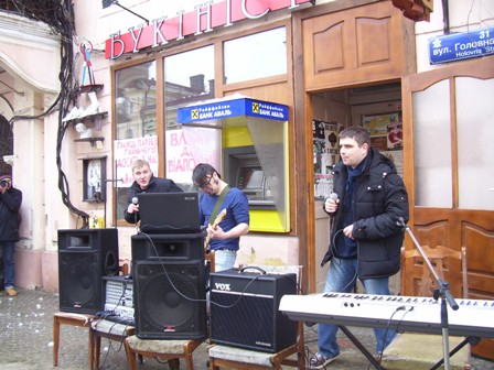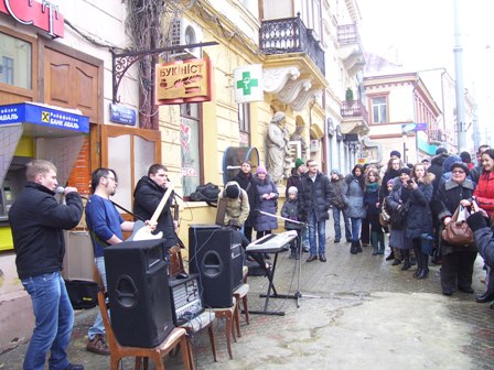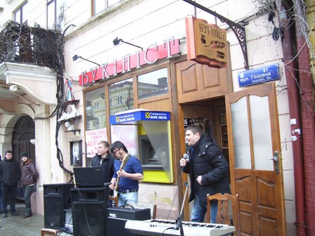 О 14 годині 15 лютого біля книгарні “Букініст” розпочався концерт чернівецьких музикантів на підтримку чернівецьких книгарень.