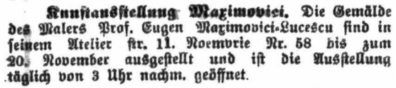 Про номер будинку читаємо в короткому повідомленні газети «Czernowitzer Morgenblatt» 1923 року. «Мистецька виставка Максимовича»: «Твори художника професора Євгена Максимовича-Луческу розміщені в його ательє за адресою 11 Noiembrie, буд. 58». (Вул. 11 Noiembrie – колишня Francensgasse, тепер вул. 28 червня).