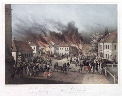 Пожежа у Чернівцях 21 серпня 1859 р. 1859 р. Акварель. Кольорова літографія