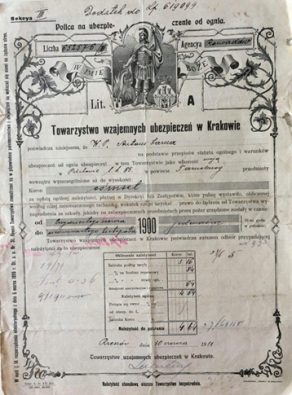 Тоді офіс містився вже на Herrengasse, 23, з ліпним написом на архітраві (над вікнами) «Товариство взаємного страхування у Кракові».