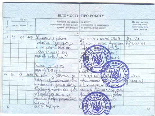 Кінцевий запис у трудовій книжці про звільнення з’явився з третього разу, а перед цим двічі були інші – закреслювалися й офіційно, із затвердженням печаткою, визнавалися недійсними.