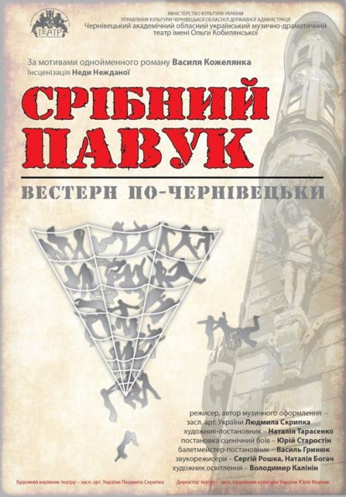 Як на мою суб’єктивну думку, нічого подібного до «Срібного павука» чернівецька трупа муздраму ще не ставила. Талановитий твір нашого земляка й сучасника з трагічною долею самітника, покійного вже, на жаль, Василя Кожелянка, так само талановито був реалізований на сцені людиною з не менш трагічною долею. Режисеру постановки і художньому керівникові театру Людмилі Скрипці вдалося все – від сценічного адаптування складної фантасмагоричної альтернативної історії письменника до впізнаванності чернівецьких реалій 1938-46 років. На кінцеву мету постановки – потужний катарсис, який отримують глядачі, – працюють усі складові вистави: від музики (до речі, Скрипка є й автором музичного оформлення) до цікавої сценографії (перша робота в Чернівцях художниці Наталії Тарасенко), танців та пластики, костюмів і, зрештою, найголовнішого – гри акторів.