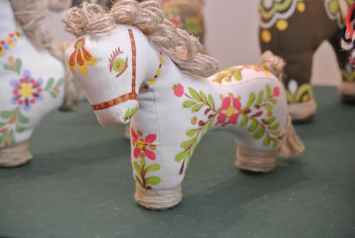 – Ваші іграшки – ексклюзивні. В інтернеті, принаймні, подібного ніхто не пропонує. Хоча зробити може кожен. Адже у багатьох по шафах є старі хустки, які просто лежать на полицях. А Ваші іграшки – всі ці коники, баранчики – виготовлені зі старої барвистої хустки. В іграшці вона заговорила новою мовою…