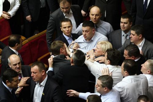 У вівторок, вже традиційно, побилися депутати Верховної Ради – після того, як Олександр Єфремов виступив з трибуни російською мовою і обізвав «Свободу» «неофашистами».
