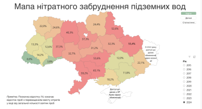 Дані за 2024 рік свідчать, що в окремих регіонах більше половини проб води з колодязів та свердловин не відповідають санітарним нормам щодо вмісту нітратів.