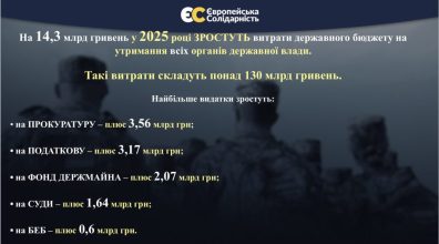 Справжнім же пріоритетом для владної команди, як зауважували виступаючі, є, безперечно, силовики. У БЕБ, скажімо, зростання фінансування становить 75%, у САП – 71%. У підсумку, витрати державного бюджету на утримання органів влади зростають загалом на 14,3 мільярда гривень. І це при тому, що чисельність українського населення, за даними Держстату, скоротилася втричі – із 42 мільйонів на початку війни, до заледве 30 млн сьогодні. Зате видатки на утримання органів влади зростуть наступного року від 30 до 70%. Виходить, що у багатьох чиновників обсяг роботи зменшився, бо стало менше людей, зате зарплата зросте майже в 2 рази.