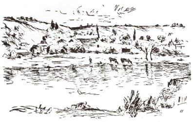 Сидіння під час малювання перешкоджає його прагненню швидко схопити те, що він бачить. Однак цей порив не зникав і тоді, коли він перетворював маленькі ескізи на великі красиві картини у своєму кабінеті. Звідти Криніцу насправді не потрібно було дивитися далеко,