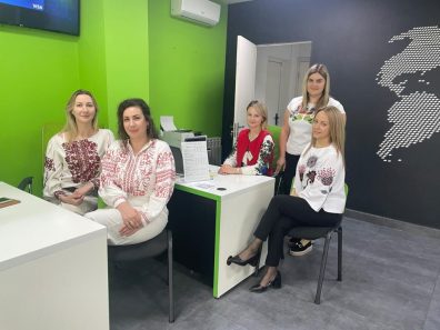 …Зайшла сьогодні у справах до відділення А-Банку, що на Проспекті Незалежості, 111, й обімліла: здалося, що потрапила чи то у квітник, чи то на свято. Всі його працівниці були у вишиванках. Попросила дівчат стати гуртом для світлини. Дуже вдячна їм, що погодилися.