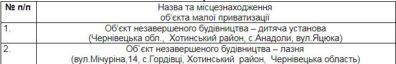 Перелік об’єктів малої приватизації Чернівецької області, які плануються до продажу на аукціонах через електронну торгову систему «ProZorro.Продажі»