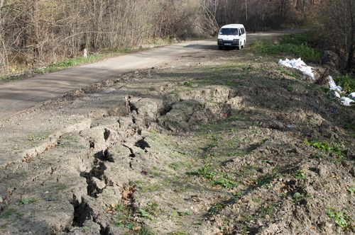 – Ось тут мав би бути придорожній кювет, – показує Зибій Білоус, мешканець села Червона Діброва. Проте автодорівців, схоже, цілком влаштовує, щоби вода стікала донизу прямо по дорозі, вимиваючи за собою усі наслідки їхніх «ремонтів»! Тож після кожної зливи цей відрізок шляху доводиться латати та рівняти…