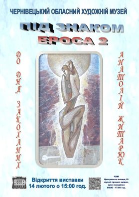 Завтра, 14 лютого о 15.00 годині в Чернівецькому обласному художньому музею відбудеться відкриття персональної виставки «Під знаком Ероса -2» відомого буковинського художника, члена Національної спілки художників України Анатолія Житарюка. На ній буде представлено близько 50 творів митця.