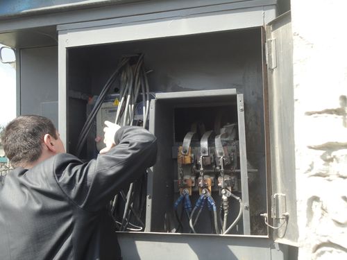 Ось так тепер виглядає зняття показів лічильника, який обслуговує крамницю. Навіть доволі високому чолов’язі – представнику енергопостачальної організації, який саме приїхав до підприємців Любімських щось знову перевіряти, довелося стати на камінь і піднятися на пальці, аби побачити цифри… Бо ж лічильник встановили не деінде, а всередині трансформаторної підстанції!