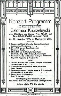 Восени 1911 року в Чернівцях з нетерпінням чекали на концерт Соломії Крушельницької. Про цю зустріч з хвилюванням повідомляли часописи «“Czernowitzer Tagblatt» від 8 листопада, «Czernowitzer Allgemeine Zietung» від 11 листопада та «“Czernowitzer Zietung» від 12 листопада.