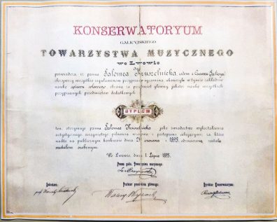 У тексті диплома, виданого випускниці консерваторії Соломії Крушельницькій, читаємо: