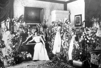 Фото,1903. Примадонна Великого театру у Варшаві Соломія Крушельницька після вистави у себе вдома.