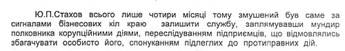 Однак уже за кілька місяців Юрія Стахова призначають начальником обласного управління МНС. Ось тоді Коломієць і розгортає свою бурхливу діяльність. Він пише листи Президенту України Віктору Ющенку, міністру з питань надзвичайних ситуацій Віктору Балозі, голові комітету ВР з питань боротьби з корупцією Володимиру Стретовичу. Бізнесмен звинувачує Стахова в корупції, переслідуванні підприємців, інтриганстві. Згадує про очищення влади та ідеали Майдану.