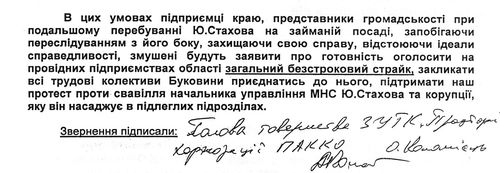 Окрім Стахова та Добрянського під ним підписалися також колишні працівники ДСНС Сергій Цап та Іван Столяр.