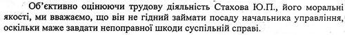 Епістолярні вправляння Коломійця не минулися дарма. Була створена спеціальна комісія, і за результатами її роботи Стахова досить швидко звільнили: він устиг пропрацювати всього лише 20 днів.