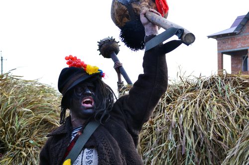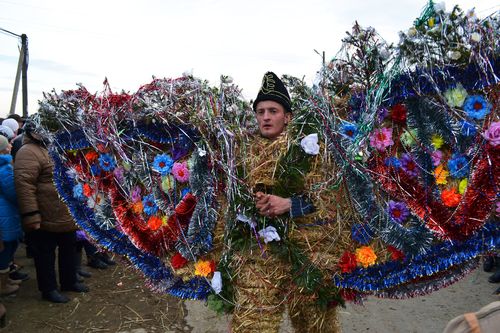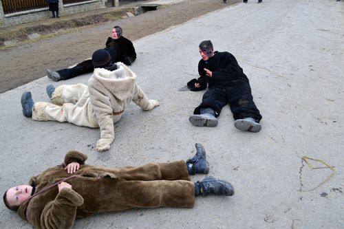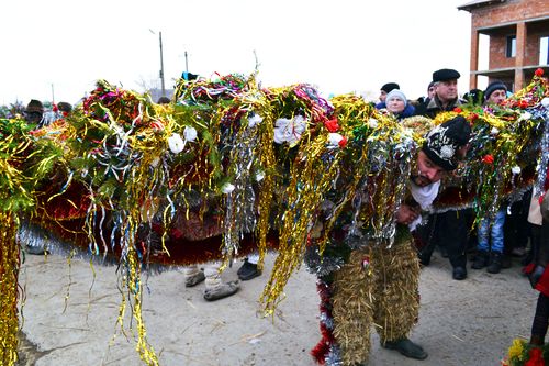TRAIASCHE MALANCA !!! У центрі селища маланкарі показують свої вистави. У кожної свій сценарій. Першими «на сцену» традиційно виходять «дід і баба». За ними слідують «царі і цариці» в румунських національних костюмах, «цигани з ведмедями», «жиди» з металошукачами.