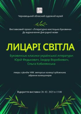 І саме на відкриття однойменної виставки «ЛИЦАРІ СВІТЛА. Буковинські класики української літератури: Юрій Федькович, Ізидор Воробкевич, Ольга Кобилянська» запрошує чернівчан та гостей міста Відділ маркетингу, розвитку та комунікацій Чернівецького обласного художнього музею.