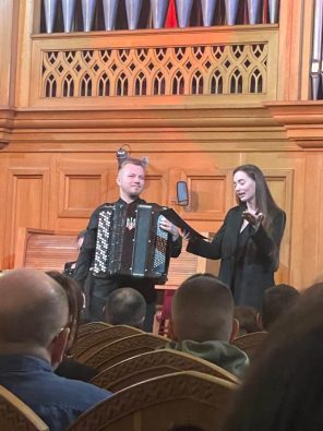 Окремо глядачу представили В’ячеслава Мосейчука, випускника Чернівецького музучилища. У залі сиділи його викладачі, яких теж привітали оплесками.