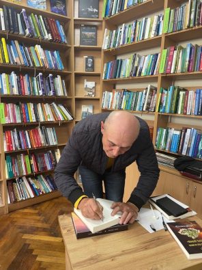 Автограф-сесія: Томулець підписує розкуплені книги, гроші від яких підуть на ЗСУ.