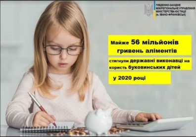 У 2020 році відділи державної виконавчої служби у Чернівецькій області стягнули 55828688 гривень аліментів на користь 6102 дітей.