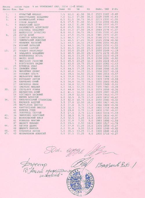 Турнірна таблиця фіналу Чемпіонату області з шахів 2014 року.