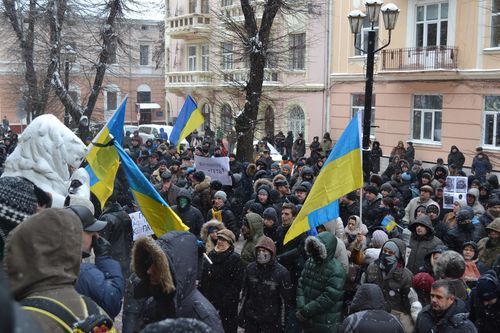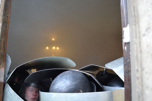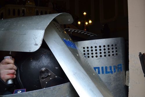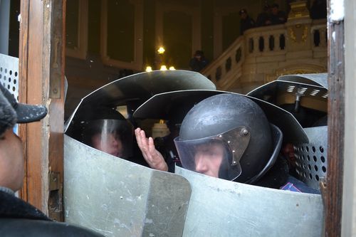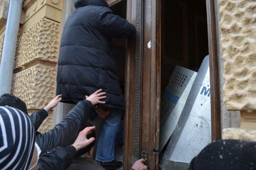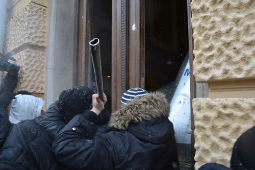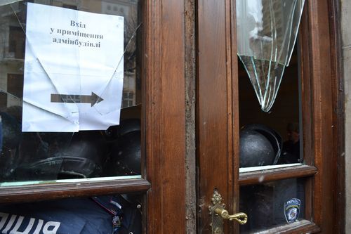 Як ми вже повідомляли, мітингувальники знесли бокові та центральні двері . І лише після цього