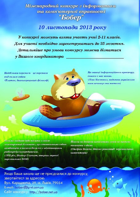VІ Міжнародний конкурс “Бобер – 2013” буде проведений 10 листопада 2013 року.