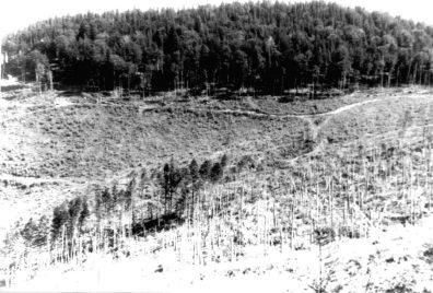 Смуга лісоповалу. З протилежного краю смуги збереглась абсолютно неушкодже-на шеренга дерев.