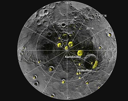 Зображення північного полюсу Меркурія, отримані Messenger . Фото з сайту NASA.