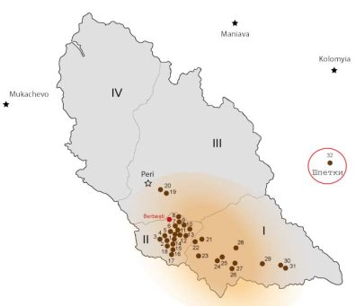 Нанесено також і буковинські Шпетки — єдине відоме місцезнаходження іконописних творів Олександра Понегальського на іншому боці Карпат.