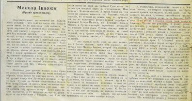 Зокрема, у дописі першого біографа та духовного наставника художника, критика, публіциста й письменника Осипа Маковея, надрукованого у газеті «Буковина» за 8 (20) січня 1897 року під заголовком «Микола Івасюк. Руский артист-маляр», читаємо: «Микола Івасюк народився 16 квітня 1865 р. у Заставні на Буковині».