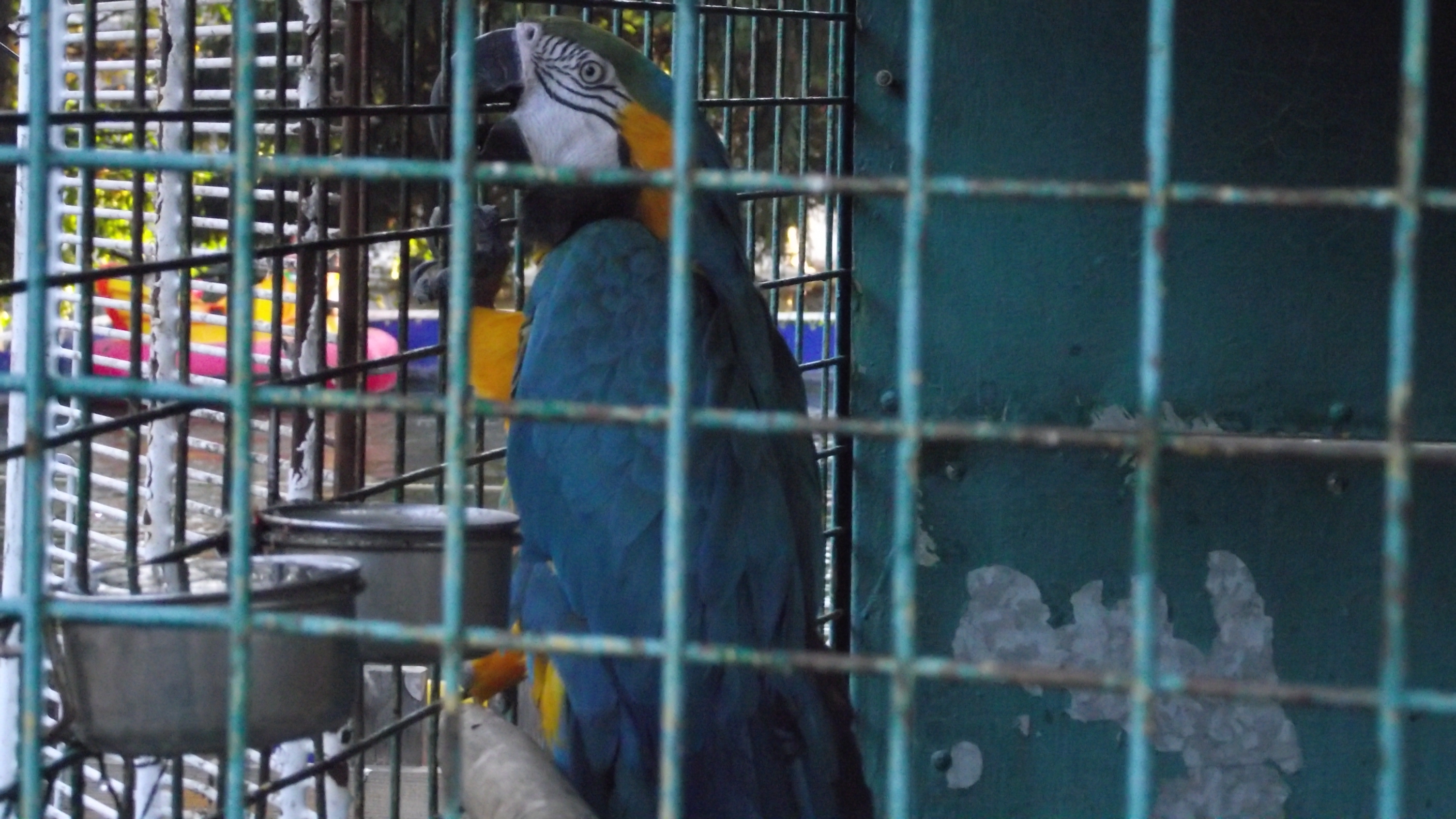 – Синьо-жовта дівчинка Аркадія живе на території парку вже дев’ять років, – розповідає пані Сидонія, касир комплексу атракціонів «Синій папуга» парку «Жовтневий». Купуємо корми, даємо горішки – грецькі, арахісові, фісташки. Також Аркаша полюбляє овочі і фрукти, сухарики, але найулюбленіша її, так би мовити, страва – голландський сир.