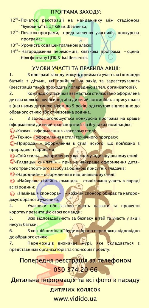 Захід проводитиметься вже четвертий рік поспіль і став вже традиційним святом  для молодих батьків   м.Чернівці. Також в цьому році організатори та спонсори проекту вирішили переглянути  перелік номінацій і крім вже традиційних   номінацій  («Казковий стиль», «Техно», «Природа», «Власний Стиль», «Приз глядацьких симпатій» «Народний стиль», «Найкраща сімейна команда» ) буде обрано переможця, який окремо отримає  звання «Дитячий візок року» та окремо кожний спонсор  обиратиме сам  і визначає свого переможця в «Номінації спонсора».