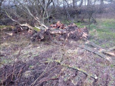 Під час патрулювання територій державною лісовою охороною лісгоспу у 73 кварталі лісництва було виявлено 95 зламаних, скоріш за все, за допомогою спецтехніки, дерев акації, верби, а глоду та черешні, стовбури яких мали в діаметрі від 10 до 80 сантиметрів. Більше того, порушники здискували захоплену площу державного лісового фонду. Завдана такими зухвалими діями державі шкода у розмірі 555 тис. грн.