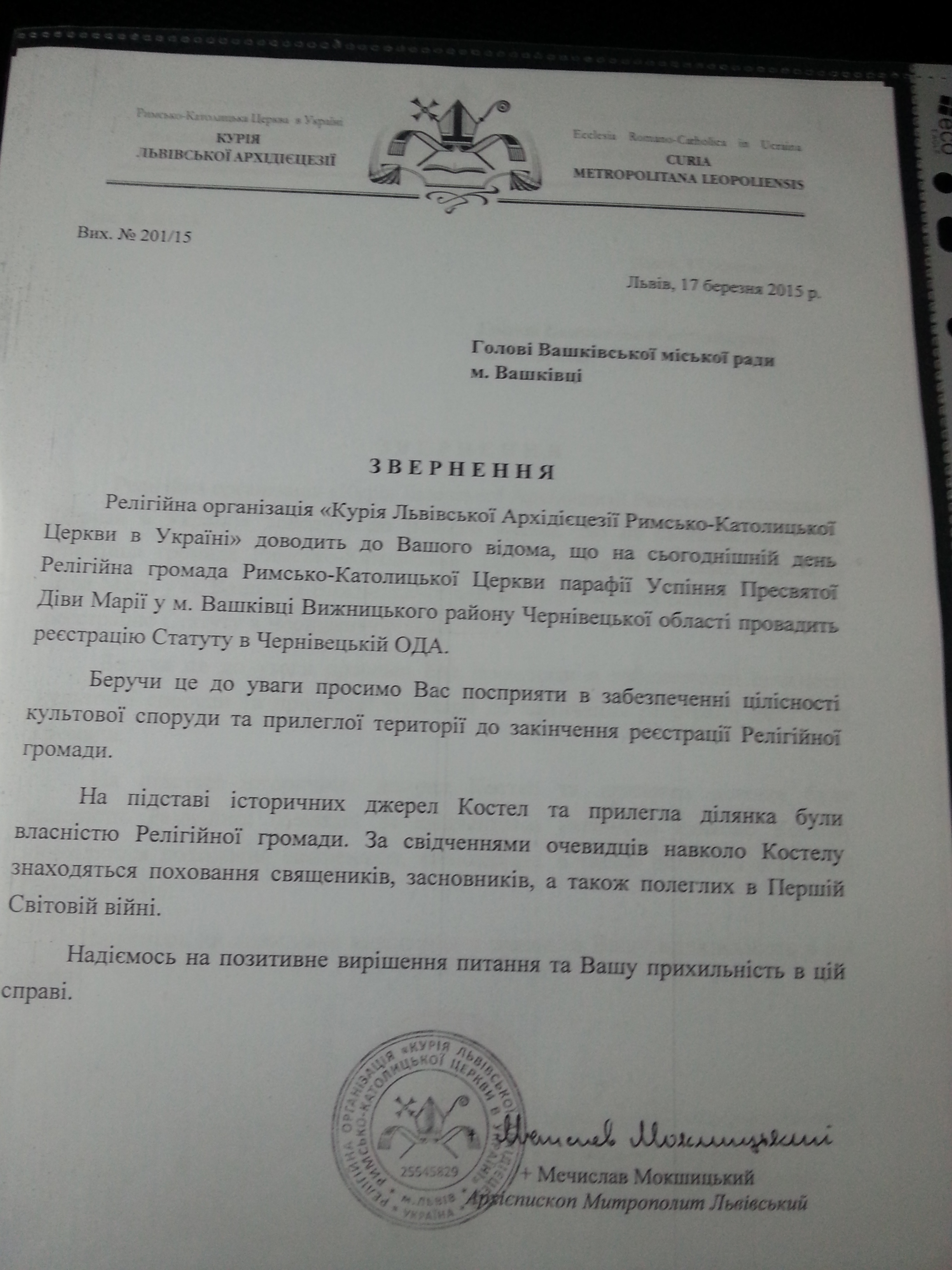 Редакція спостерігатиме за розвитком ситуації з відновлення костелу у Вашківцях та інформуватиме про це читачів.