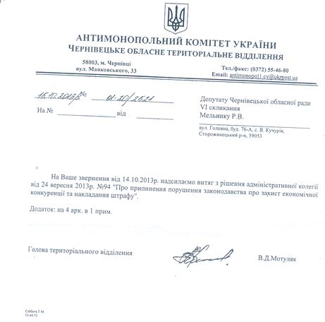 Отже, Адмінколегія Чернівецького обласного територіального відділення Антимонопольного комітету України встановила: