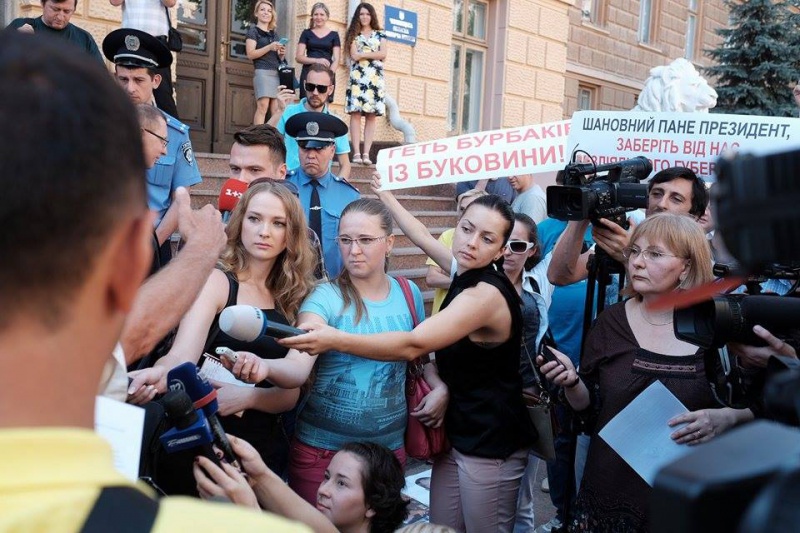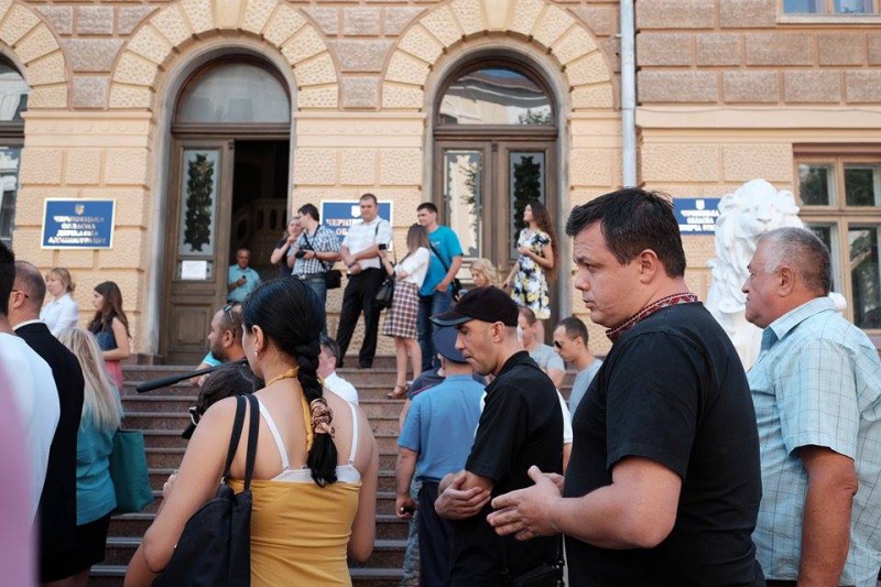 …Сьогоднішні події біля Будинку з левами вразили ще більше. Молодь, вигляд якої засвідчує, що вона не є членом “Патріотичної громади Буковини”, та й на попередніх рейдах з п. Жижияном та Семенченком не світилися, у розмові з кореспондентами не змогла конкретно пояснити, кого вона хоче люструвати і чому прийшли саме під стіни обласної державної адміністрації.