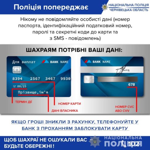 Невідома особа незаконно заволоділа майже 71 тисячею гривень 62-річної мешканки Сокирян через банківську карту. Ошукана жінка звернулася на спецлінію «102». Опитавши заявницю, […]